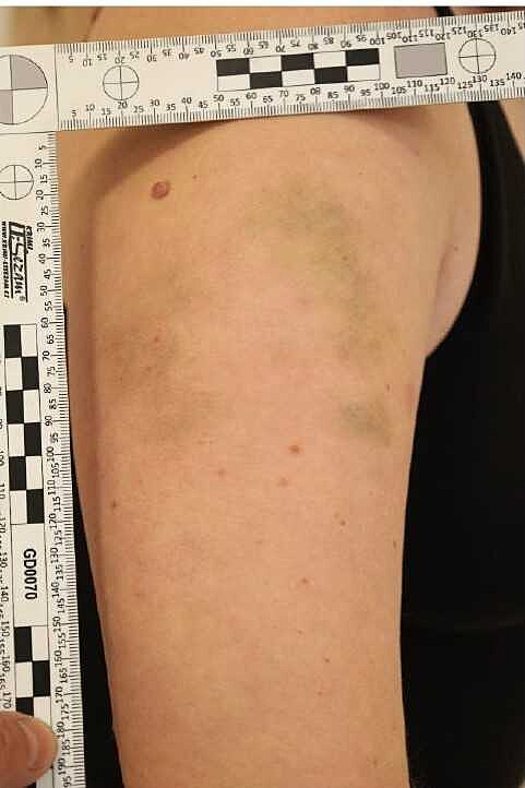 Na ruce ženy zůstaly po útoku modřiny. (4. dubna 2025)