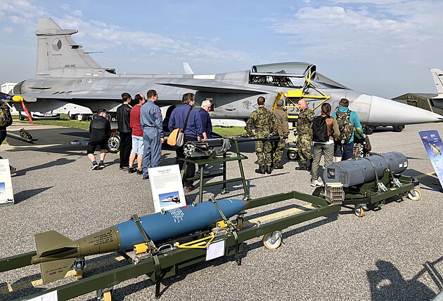 Den otevřených dveří čáslavské základny. JAS-39 Gripen českých Vzdušných sil s výzbrojí. (20. května 2023)