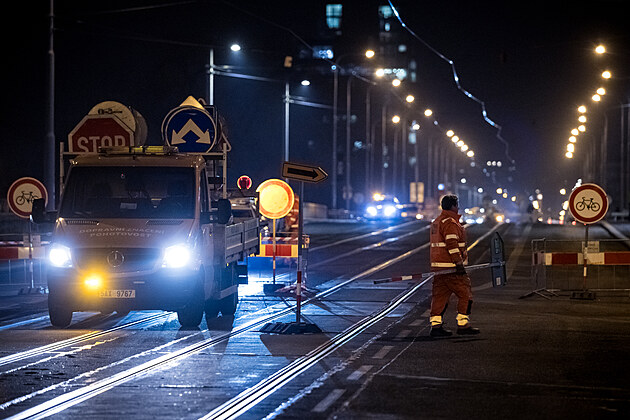 Uzavřený Libeňský most v Praze (11. ledna 2024)