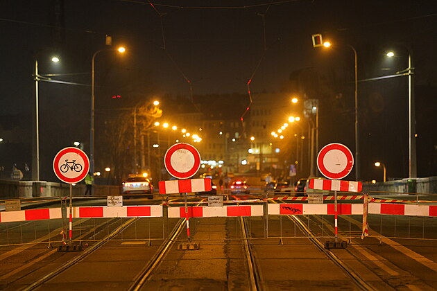 Z důvodu havarijní uzavírky Libeňského mostu je zastaven provoz tramvají mezi Palmovkou a Maninami. (11. ledna 2024)