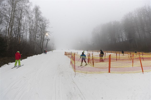 Úvod zimní sezóny v lyžařském areálu Monínec za zpřísněných pravidel kvůli koronaviru (19. prosince 2020)