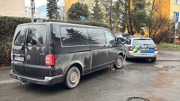 Policisté zasahují v Chotutické ulici v pražských Malešicích, kde je ve 3.patře zabarikádovaný muž, který hrozí zapálením budovy. (5. prosince 2025)