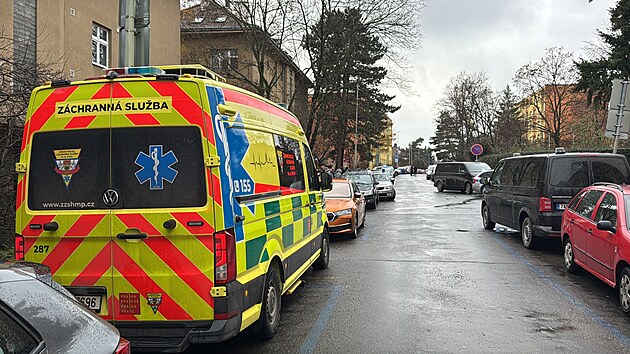 Policisté zasahují v Chotutické ulici v pražských Malešicích, kde je ve 3.patře zabarikádovaný muž, který hrozí zapálením budovy. (5. prosince 2025)