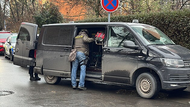 Policisté zasahují v Chotutické ulici v pražských Malešicích, kde je ve 3.patře zabarikádovaný muž, který hrozí zapálením budovy. (5. prosince 2025)