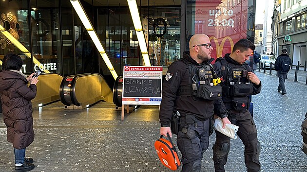 Zásah jednotek integrovaného záchranného sboru u výstupu z metra na Národní třídě (10. ledna 2025)