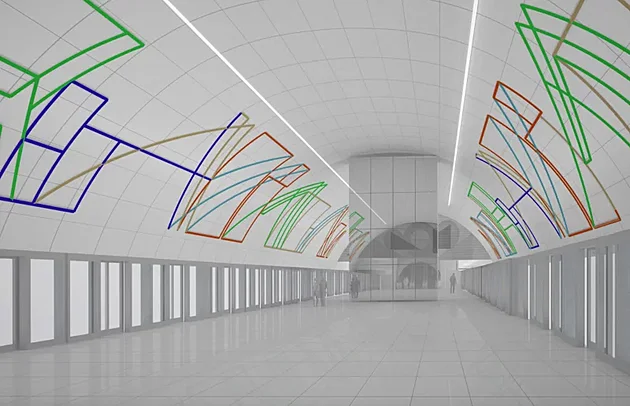 Vizualizace budoucí stanice metra D Nové Dvory.