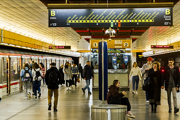 Nový vzhled informačních panelů je k vidění ve stanici Palmovka (1. listopadu 2023)
