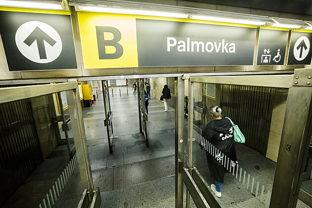 Nový vzhled informačních panelů je k vidění ve stanici Palmovka (1. listopadu 2023)