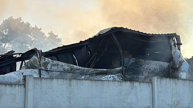 V Předměřicích nad Jizerou na Mladoboleslavsku v noci na čtvrtek začala hořet skladovací hala, na místě zasahuje sto hasičů. (6. března 2025)