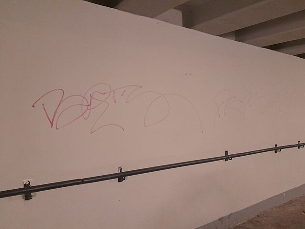 Posprejovaná značka v pražských Modřanech (14. září 2025)