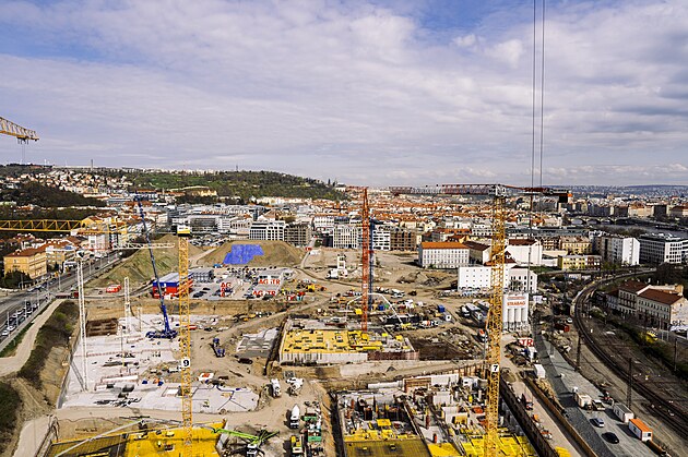 Stavba nového sídla České spořitelny. Smíchovské nádraží, stavba, development, Smíchov City, staveniště. Praha, 9. dubna 2025