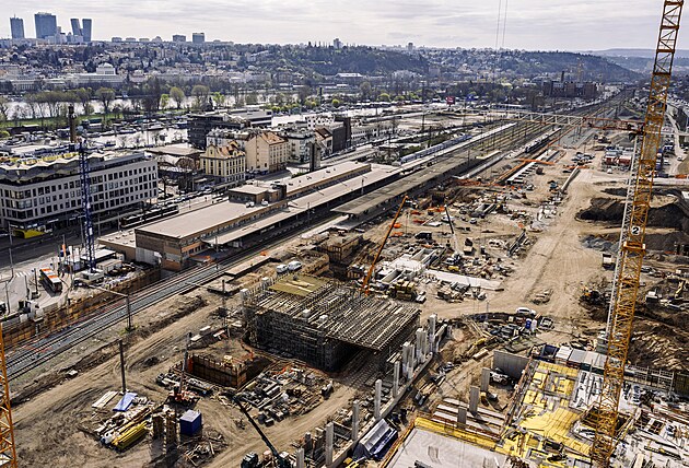 Stavba nového sídla České spořitelny. Smíchovské nádraží, stavba, development, Smíchov City, staveniště. Praha, 9. dubna 2025