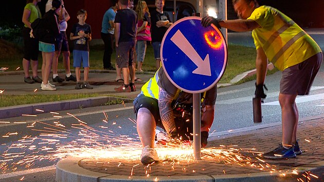 Kvůli instalaci nové ocelové konstrukce železničního mostu je už od sobotní noci uzavřena část Nádražní ulice. (21. července 2025)