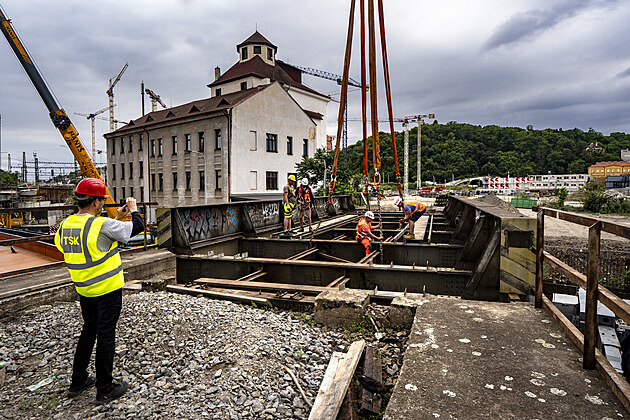 Demolice původního železničního mostu u Smíchovského nádraží v Praze (21. července 2025)