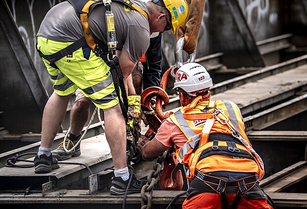 Demolice původního železničního mostu u Smíchovského nádraží v Praze (21. července 2025)