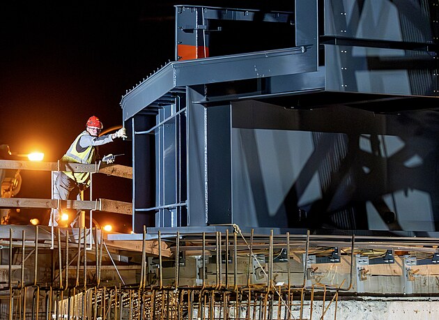 Instalace nové ocelové konstrukce železničního mostu v Nádražní ulici (22. července 2025)