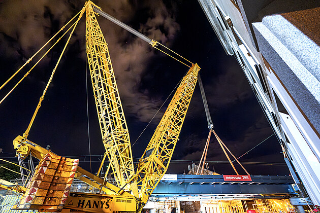 Instalace nové ocelové konstrukce železničního mostu v Nádražní ulici (22. července 2025)