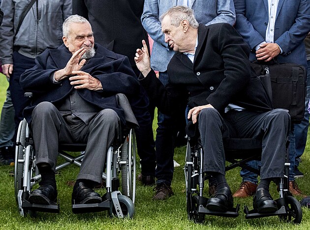 Karel Schwarzenberg a Miloš Zeman při tradiční vzpomínkové akci „Masarykova vatra“ při příležitosti výročí 85. úmrtí T. G. Masaryka. (17. září 2022). Tento snímek ocenili návštěvníci výstavy Czech Press Photo za rok 2022 třetím místem.