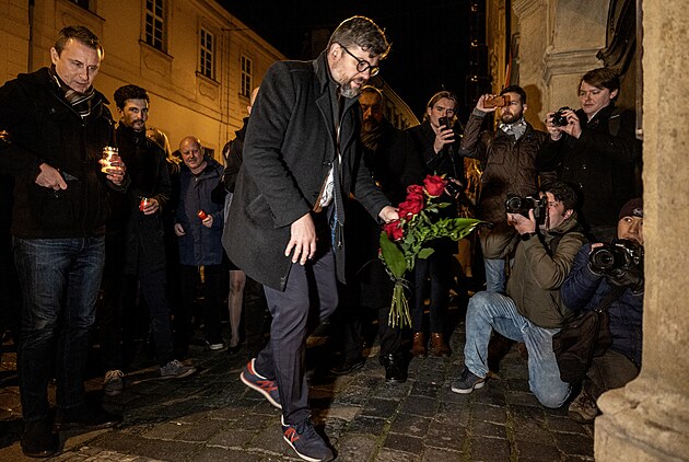 Na dvě stě lidí se zúčastnilo akce vyvolané europoslancem Jiřím Pospíšilem, ten vyzval veřejnost ke kolektivnímu zapálení svíček za zesnulého Karla Schwarzenberga. (12. listopadu 2023)