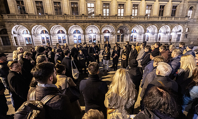 Na dvě stě lidí se zúčastnilo akce vyvolané europoslancem Jiřím Pospíšilem, ten vyzval veřejnost ke kolektivnímu zapálení svíček za zesnulého Karla Schwarzenberga. (12. listopadu 2023)