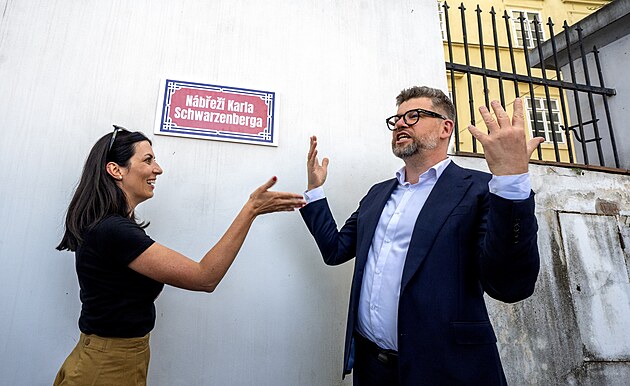 Slavnostní umístění tabule pojmenovávající část vltavského nábřeží u Karlova mostu po Karlu Schwarzenbergovi. (4. září 2025)