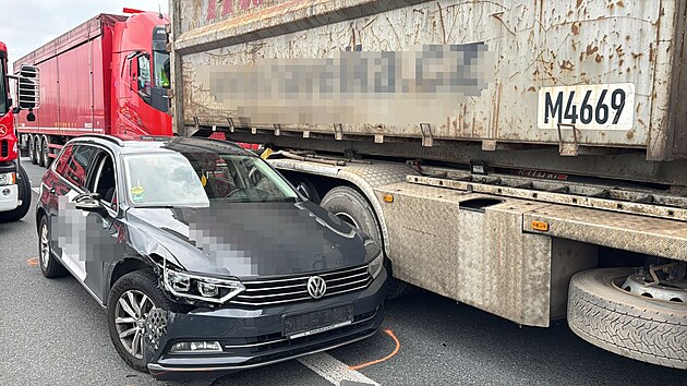 Dopravní nehoda dvou osobních a dvou nákladních aut omezila provoz v pražské ulici 5. května. (10. září 2025)