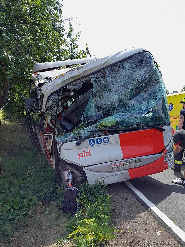 Hasiči vyjeli k dopravní nehodě autobusu, který narazil do stromu. (23. června 2025)