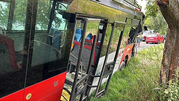 Hasiči vyjeli k dopravní nehodě autobusu, který narazil do stromu. (23. června 2025)