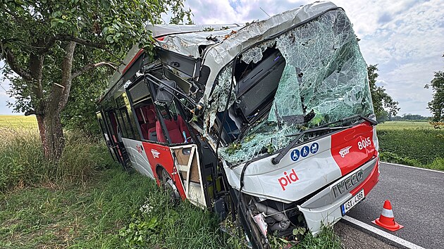 Hasiči vyjeli k dopravní nehodě autobusu, který narazil do stromu. (23. června 2025)