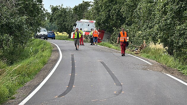 Hasiči vyjeli k dopravní nehodě autobusu, který narazil do stromu. (23. června 2025)