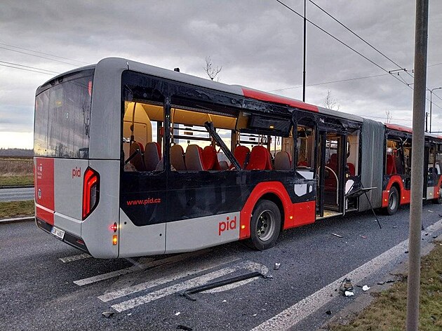 V pondělí krátce ráno se autojeřáb v pražské Liboci srazil s linkovým autobusem. (17. března 2025)
