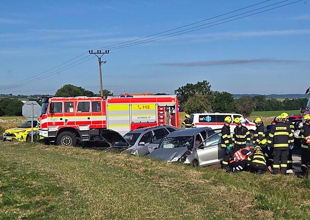 U Bečvár na Kolínsku se střetly tři osobní automobily. Čtyři ženy skončily v nemocnici. (27. června 2025)