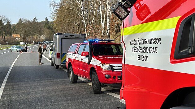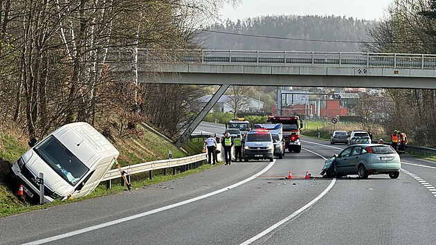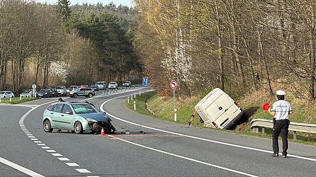 Na silnici mezi obcemi Nespeky a Poříčí nad Sázavou na Benešovsku se srazila dodávka s osobním autem. (30. března 2024)