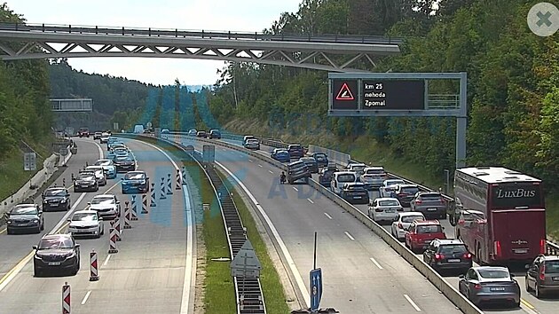 Nehoda na D1 u Mirošovic, auto skončilo na svodidlech. (29. června 2025)