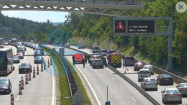 Nehoda na D1 u Mirošovic, auto skončilo na svodidlech. (29. června 2025)