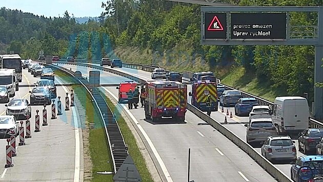 Nehoda na D1 u Mirošovic, auto skončilo na svodidlech. (29. června 2025)