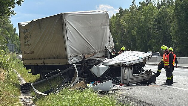 Po nehodě dvou nákladních vozidel na dálnici D5 transportoval vrtulník jednoho zraněného. (10. července 2025)