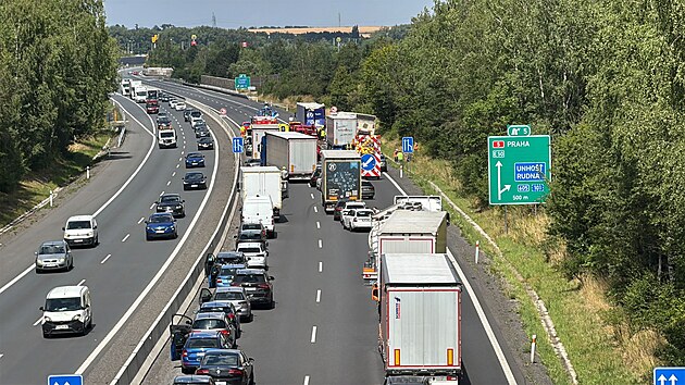 Po nehodě dvou nákladních vozidel na dálnici D5 transportoval vrtulník jednoho zraněného. (10. července 2025)
