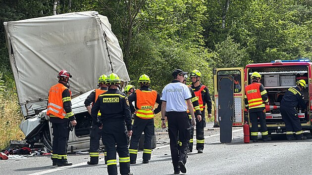 Po nehodě dvou nákladních vozidel na dálnici D5 transportoval vrtulník jednoho zraněného. (10. července 2025)