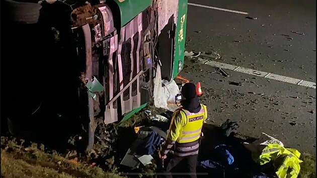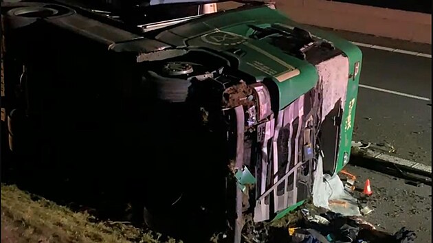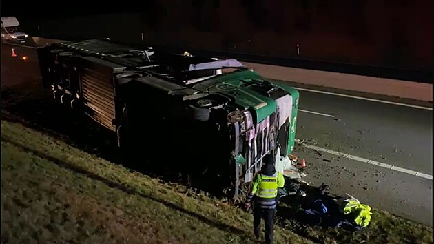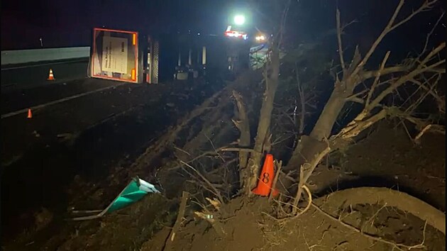 Na dálnici D7 se převrátil kamion. (17. prosince 2024)
