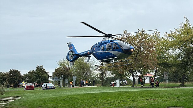 U Hodkovic v okrese Praha-západ havarovala dodávka do stromu. Na místo letěl vrtulník. (23. září 2025)