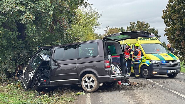 U Hodkovic v okrese Praha-západ havarovala dodávka do stromu. (23. září 2025)