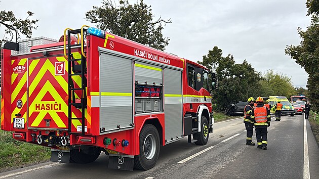 U Hodkovic v okrese Praha-západ havarovala dodávka do stromu. (23. září 2025)