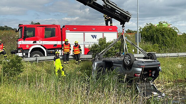 V pražských Ďáblicích spadlo auto do vodní nádrže, zasahovaly tam záchranné složky. (11. června 2025)