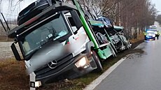 Kamioňák sjel ze silnice a opřel návěs s auty o břízy. Škoda je šest milionů![]() |