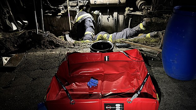 Řidič nákladního vozu sjel v Měšicích do příkopu u silnice. (9. prosince 2025)