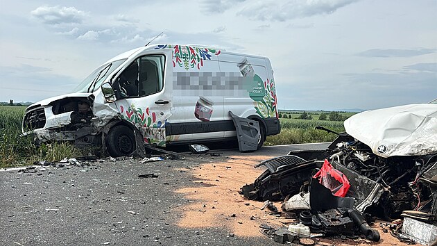 U obce Libochovičky na Kladensku se střetlo osobní auto s dodávkou. (4. června 2025)