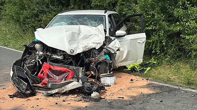 U obce Libochovičky na Kladensku se střetlo osobní auto s dodávkou. (4. června 2025)