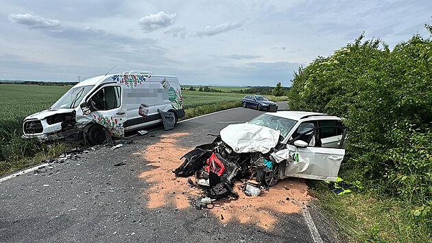 U obce Libochovičky na Kladensku se střetlo osobní auto s dodávkou. (4. června 2025)