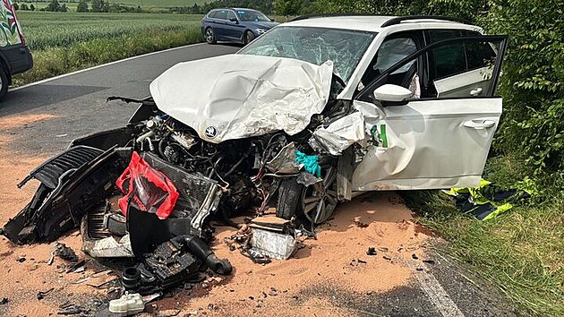 U obce Libochovičky na Kladensku se střetlo osobní auto s dodávkou. (4. června 2025)